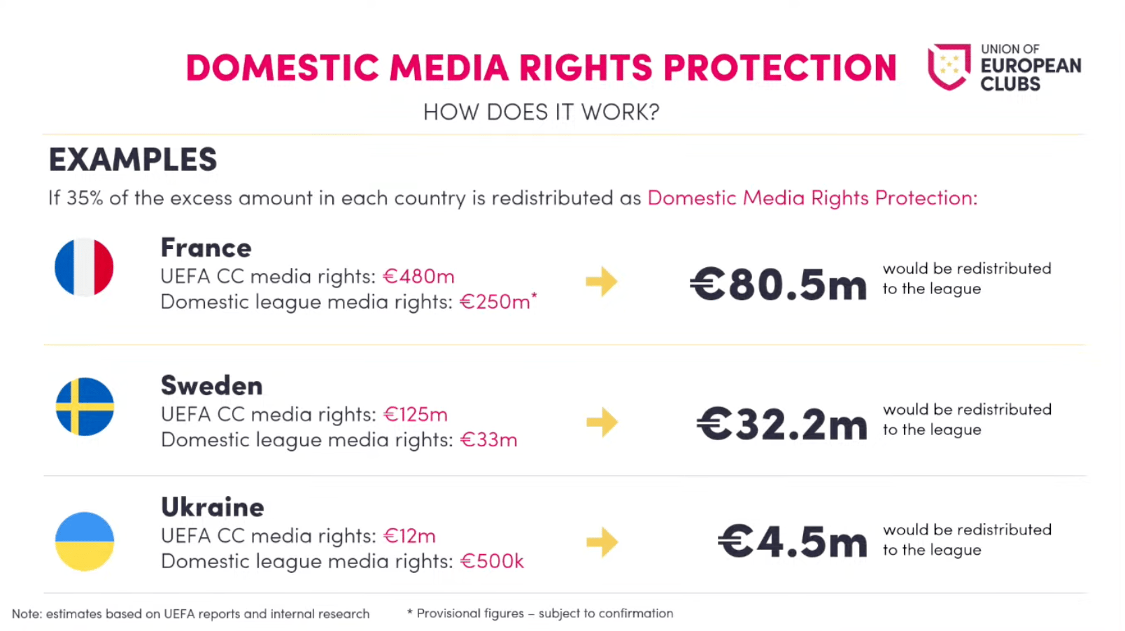 France, Sweden and Ukraine were used as examples but (according to UEC numbers) this would help 30 European leagues by redistributing more than €200m.